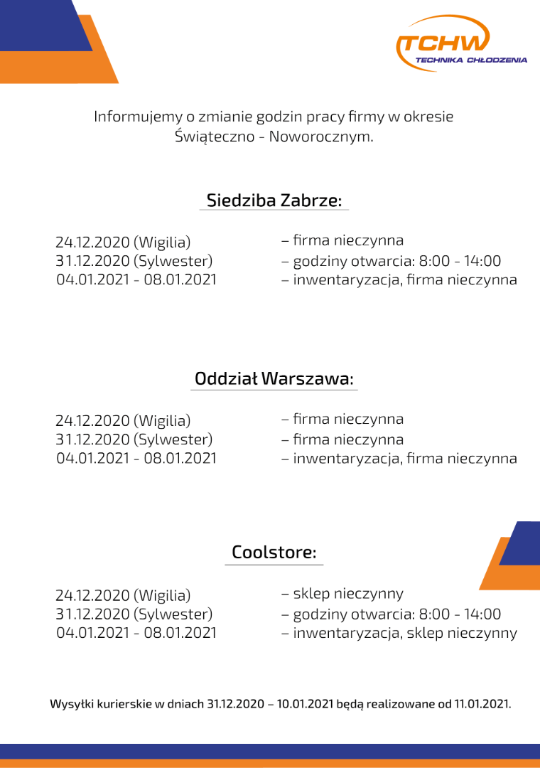 Informacja o godzinach pracy w okresie świąteczno - noworocznym