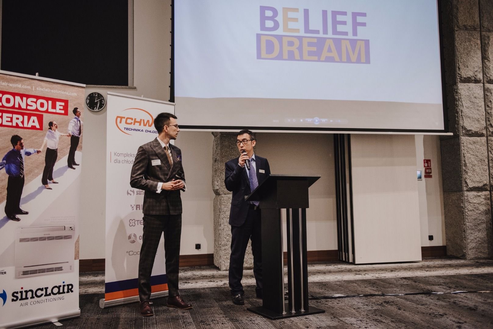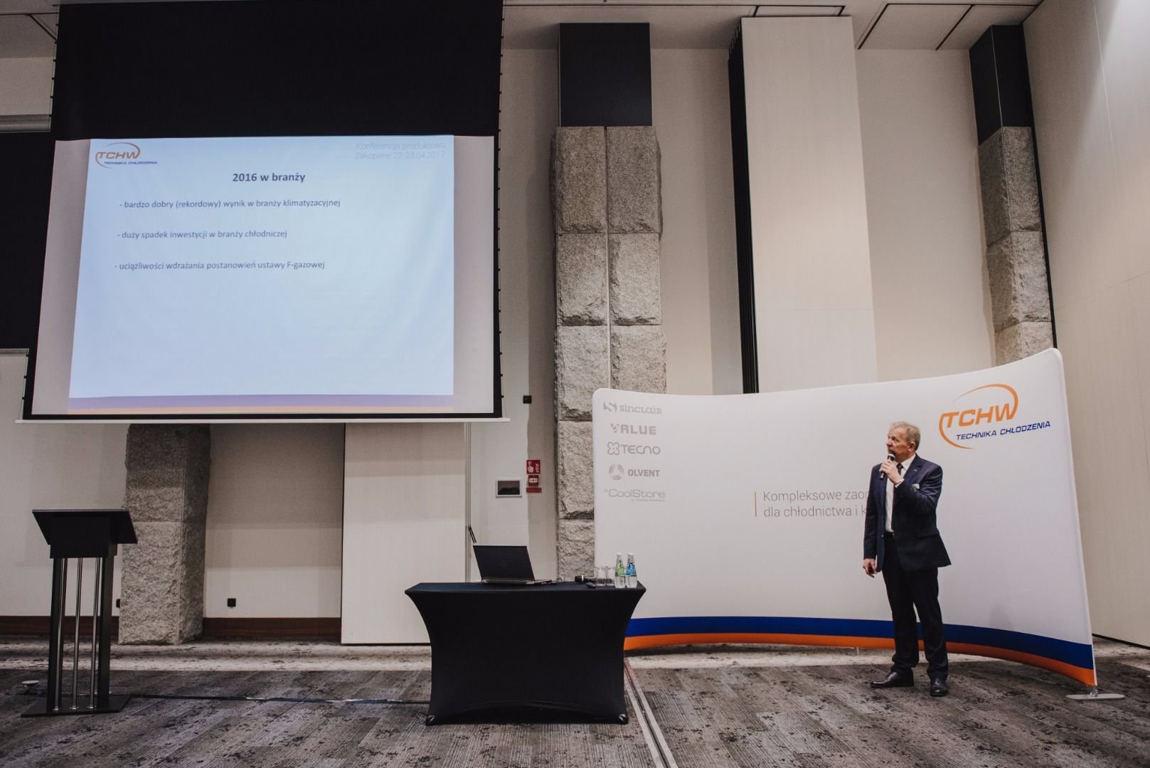 I część konferencji rozpoczął Janusz Wąsik, który podsumował ubiegły rok oraz omówił zmiany zachodzące w branży HVAC. Następnie Dyrektor Biznesowy Sinclair Corporation Stanislav Jobanek przedstawił osiągnięcia marki w mijającym sezonie oraz omówił wizję stworzenia Sinclair Global Group w przyszłym roku. Na zakończenie swojego wystąpienia wręczył okazjonalną statuetkę z okazji 15-lecia marki Sinclair na rynku europejskim na ręce właścicieli firmy TCHW, w podziękowaniu za długoletnią i owocną współpracę.